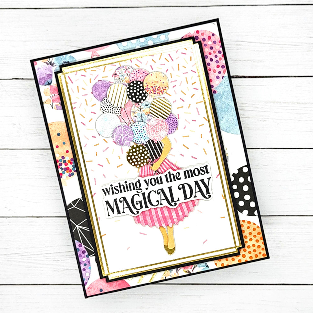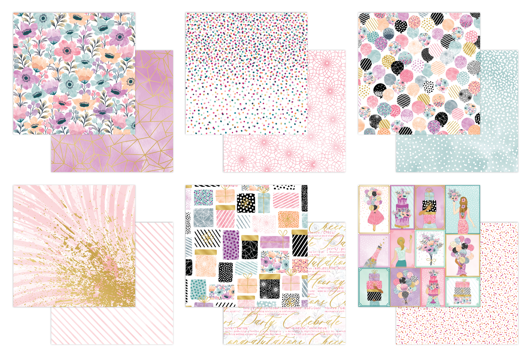 Get ready to celebrate in style with the Celebration 12x12 Paper Pack! This collection of paper is perfect for birthdays, milestones, and joyful moments of all kinds. Featuring a vibrant palette of pink, teal, and purple with bold pops of black and shimmering gold foil, these papers strike the perfect balance between elegant and playful. Patterns include balloons, presents, confetti, and more - designed to bring energy, polish, and fun to your cards, scrapbook pages, and celebratory projects.