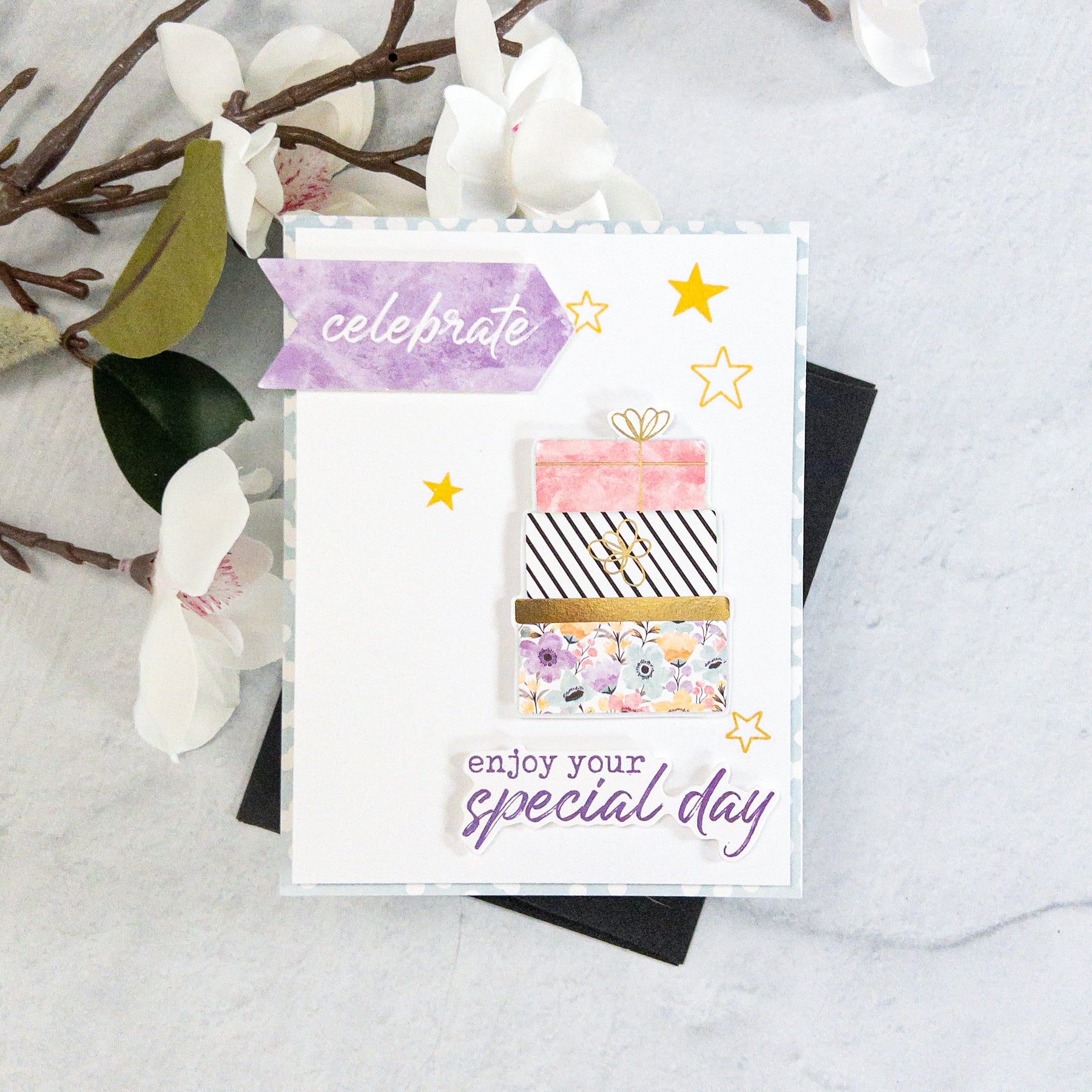 Add instant charm and dimension to your projects with the Celebration Ephemera Pack. Designed to shine on its own or coordinate beautifully with the Celebration 12x12 Paper Pack (4154), this set is filled with flowers, balloons, frames, and cheerful birthday sentiments. Perfect for mixing and matching, these ready-to-use pieces make it easy to create polished, festive cards, scrapbook pages, and celebratory projects in no time.