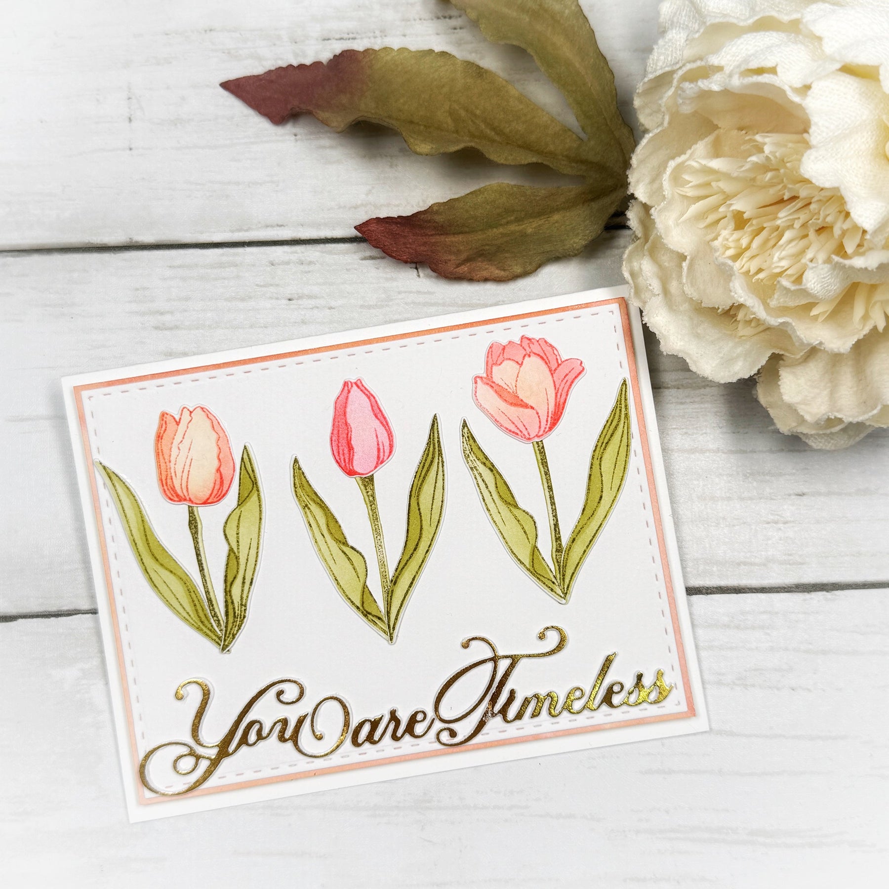Don't forget to check out the entire Fresh Tulips Product Suite! The Fresh Cut Tulips 4x6 Stamps (3558), Fresh Cut Tulips Mask Stencil (5274), Fresh Cut Tulips Layering Stencils (5275), and the Fresh Cut Tulips Coordinating Dies (8513) are all expertly designed to work hand in hand for endless crafting possibilities!