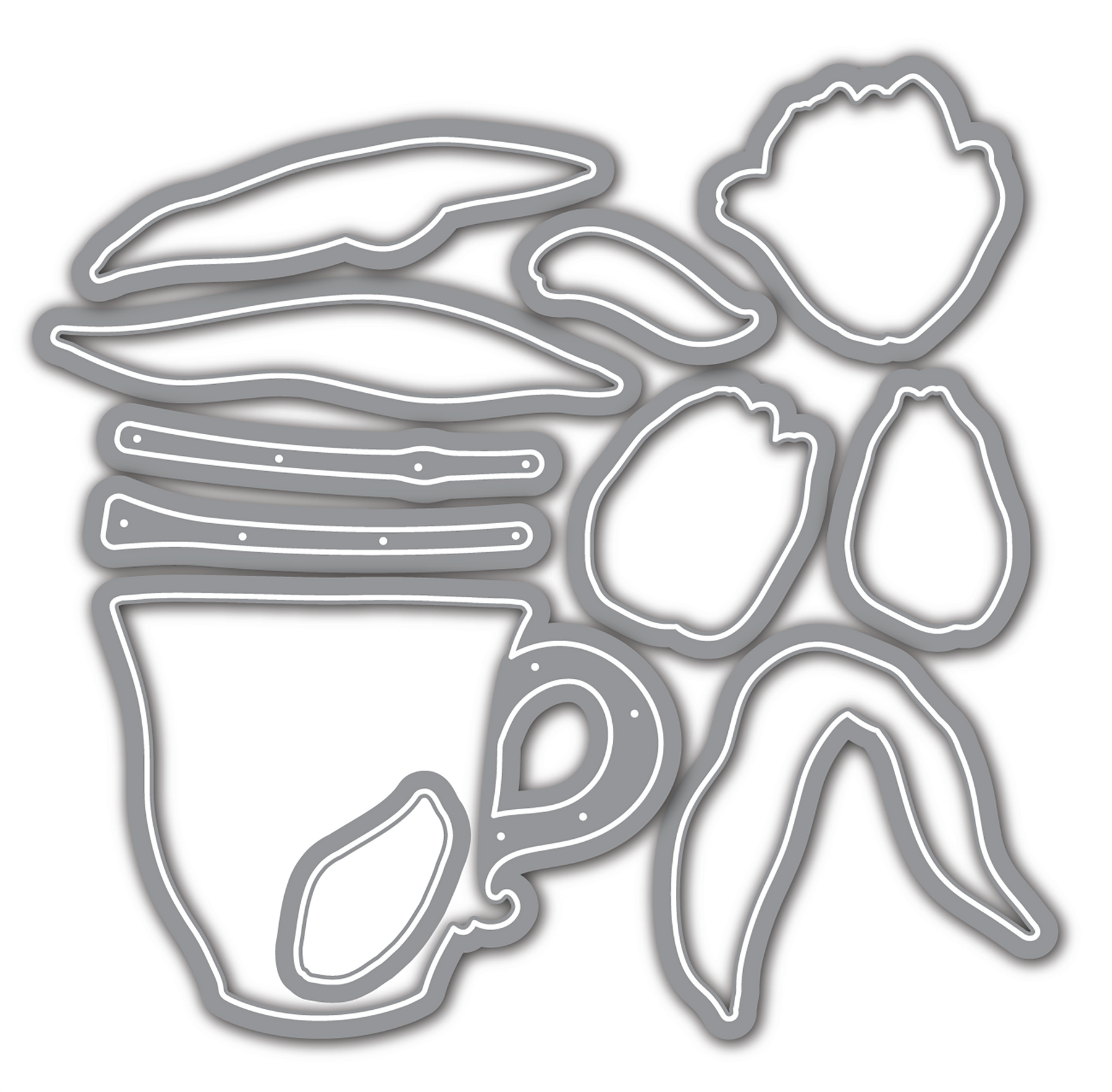 Cut out each of the flowers, petals, stems, and the mug from the Fresh Cut Tulips 4x6 Stamps (3558) with ease. These coordinating dies leave a small border for extra dimension on your projects.